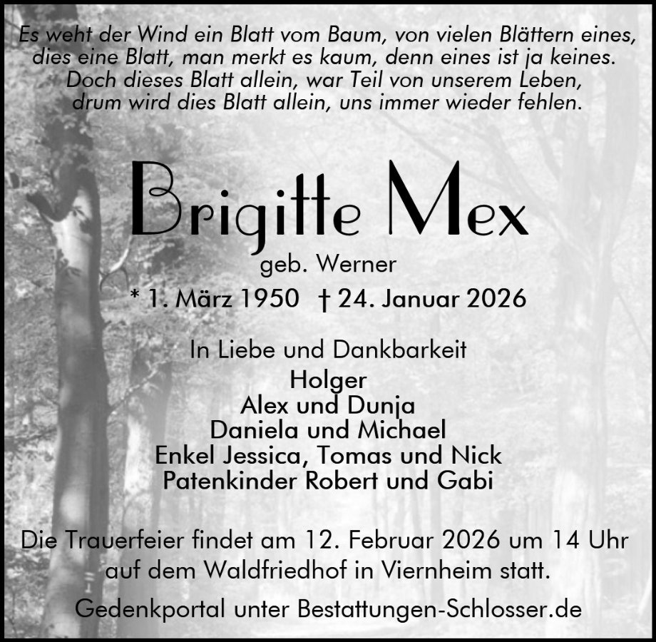 herzliches Beileid zum Tode von Brigitte, moege sie in Frieden ruhen.