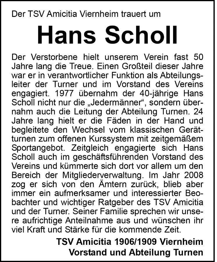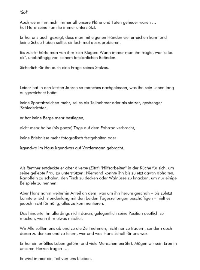 in lieber Erinnerung an unsere alte Freundschaft mein herzliches Beileid zum Tode von Hans.
