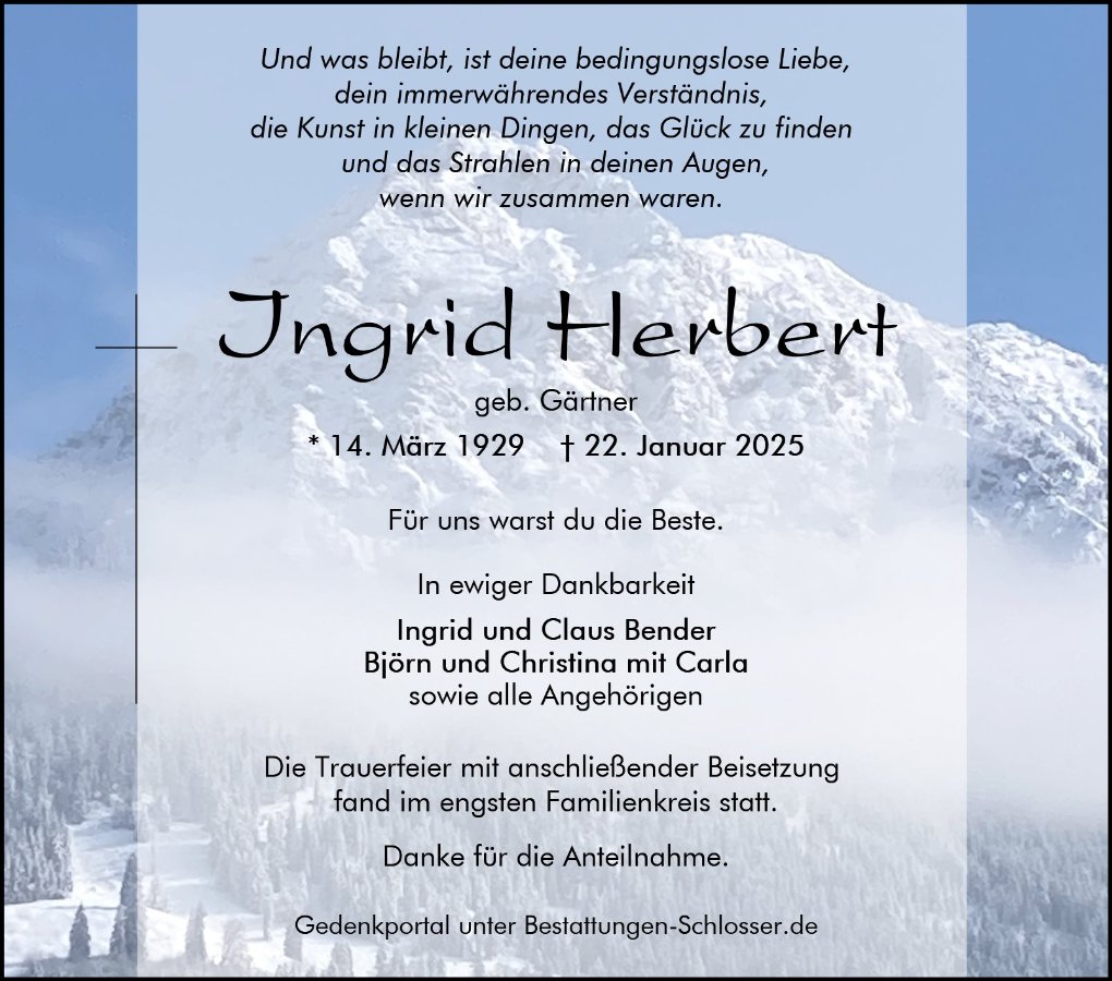 Ingrid Herbertgestorben am 22. Januar 2025