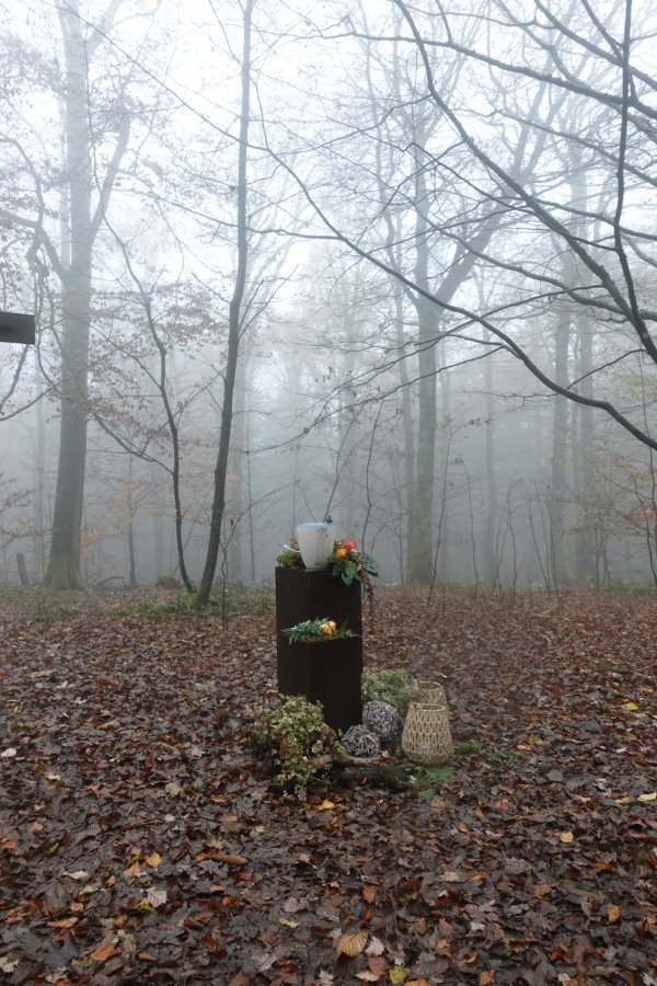 Trauerfeier in der Trauerhalle, Urnenbeisetzung erfolgt später im engsten Familienkreis, Waldfriedhof Viernheim