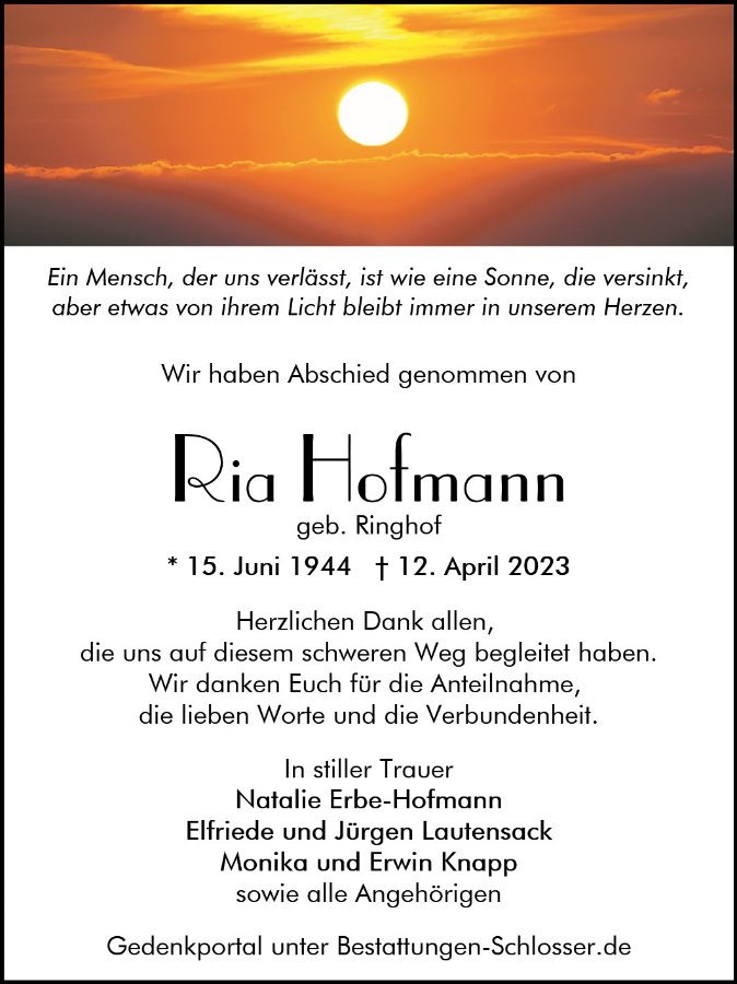 Von Beileidsbekundungen bei der Beisetzung bitten wir Abstand zu nehmen.